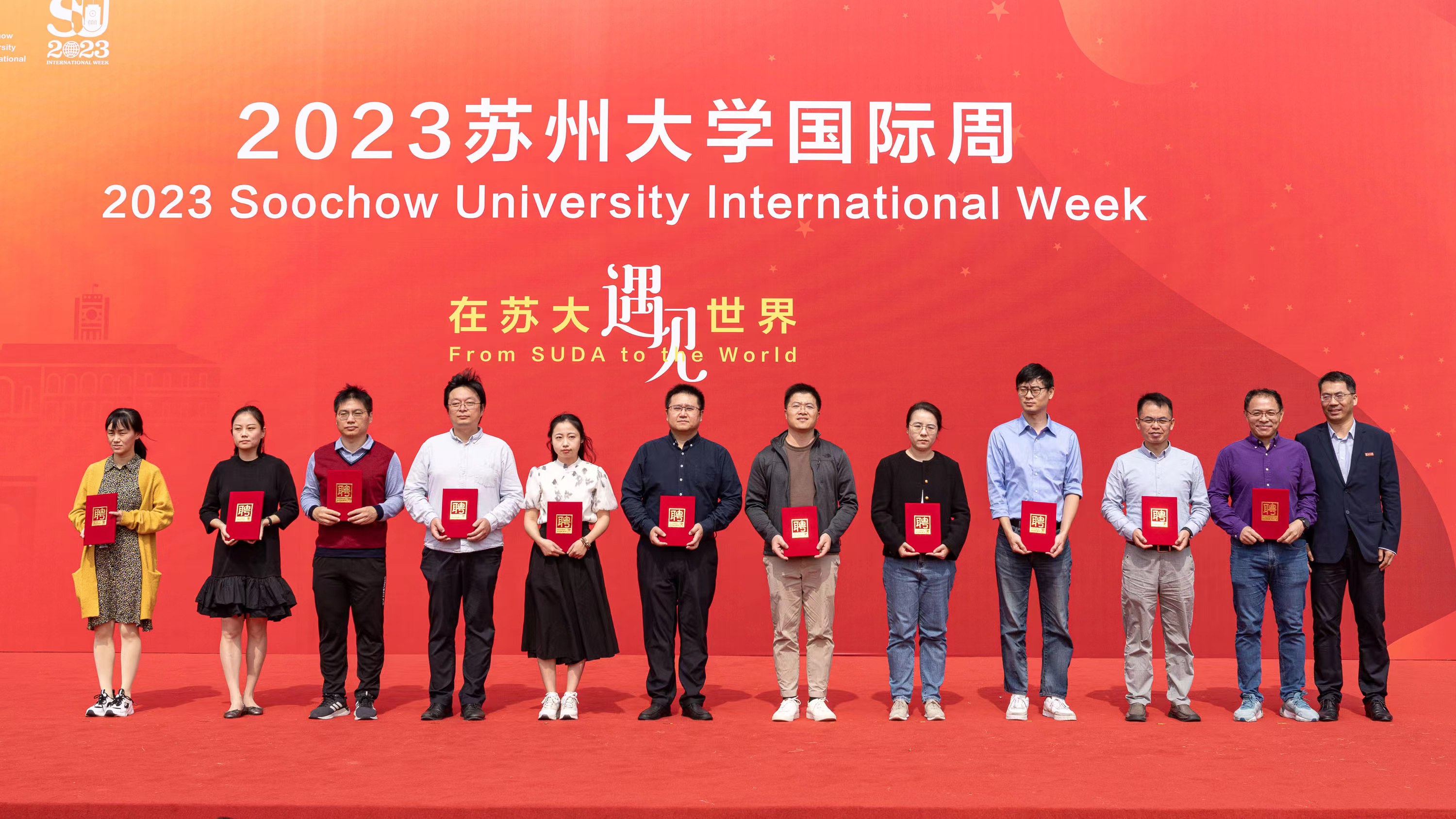 為了進一步發揮學院(部)的國際合作交流潛力,促進與國外高校以及科研機構的交流與合作,我校還在校內聘請了一批具有海外知名高校學習、工作經歷的“國際合作交流專員”,為推動學校的國際化戰略發展作出貢獻。在開幕式現場,舉行了蘇州大學國際合作交流專員聘任儀式,李孝峰為各位專員頒發聘書并合影留念。
