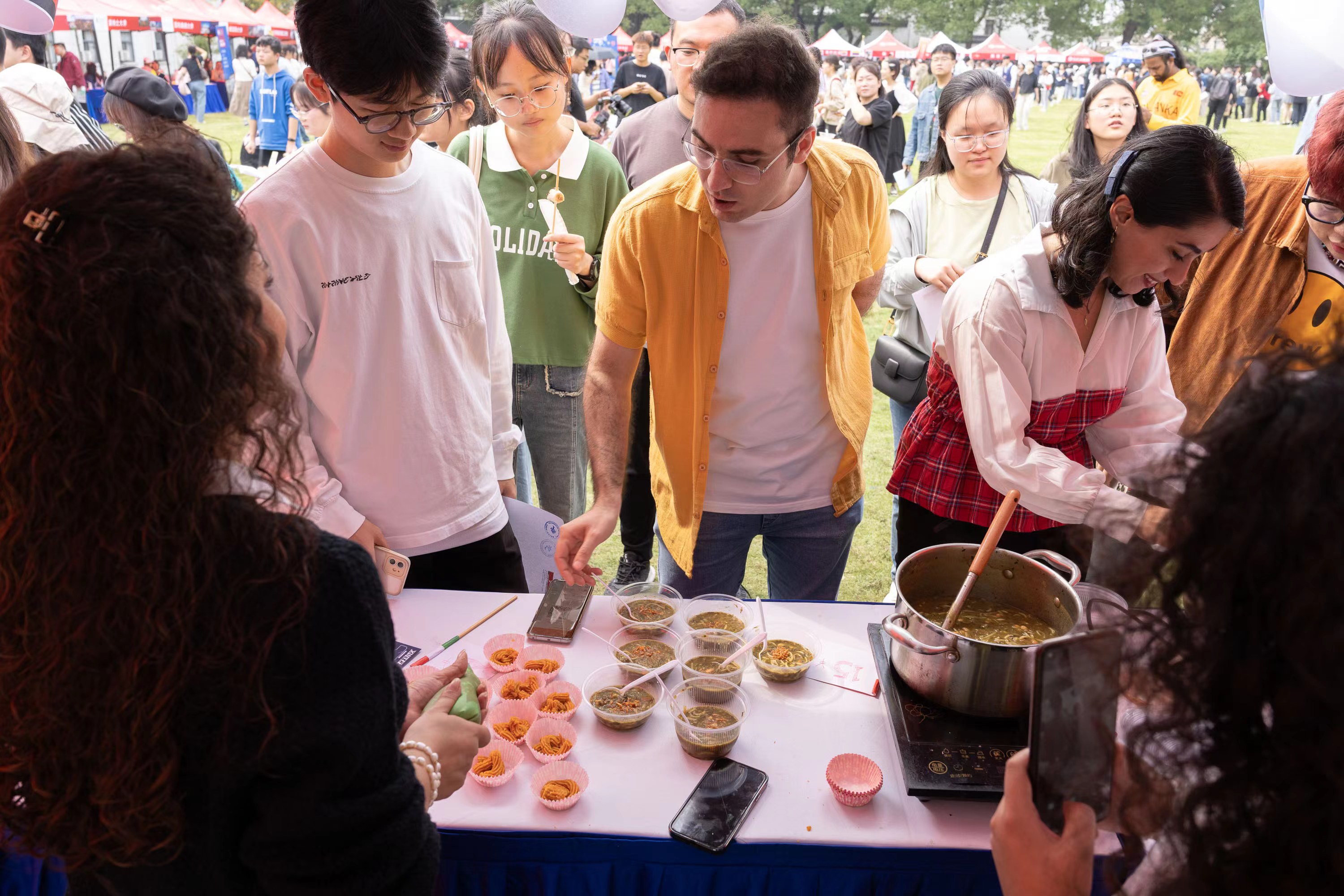 國際風情展設有19個不同國別的展臺,通過異域美食品鑒、工藝品展示、民族服裝秀、嘉賓互動體驗等形式,加深人文交流與心意相通,使大家足不出校便能開啟一場異國風情之旅。此外,紅十字國際學院、敬文書院和圖書館也作為特邀代表參展,宣傳紅十字運動精神,展示江南文化風韻,倡導全民閱讀理念。