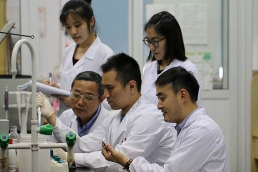圖為張舒羽(國家優秀青年科學基金獲得者)、曹建平(國務院學科評議組成員)指導學生科研