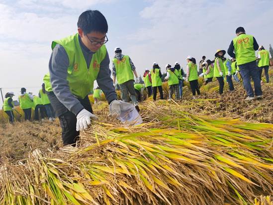隨后,師生共同走下田間地頭,參與到稻谷收割。老師和同學們干勁十足,個個揮汗如雨,1個小時的時間,就完成了既定的收割目標,看著一堆堆收割下來的稻谷,大家都難掩豐收的喜悅。收割完成后,大家撿起掉落在田里的每一根稻穗,堅決做到不浪費。