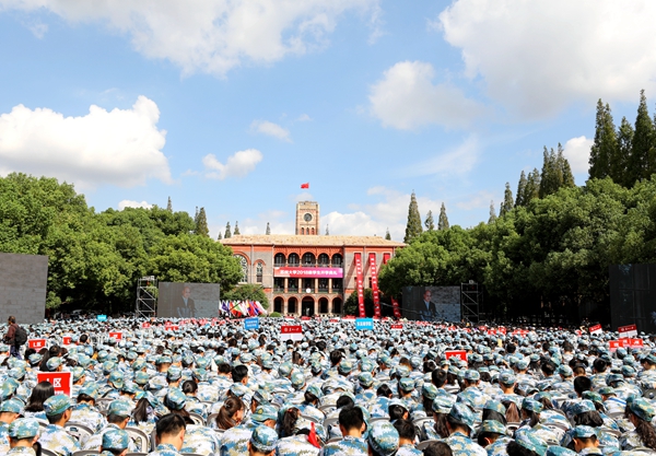 熊思東校長說,每一位來到蘇大的學(xué)生都有自己的故事,在蘇大還會有很多意想不到的人和風(fēng)景等待著同學(xué)們?nèi)グl(fā)現(xiàn)和探索。如何讓自己與蘇大的這場相遇化為永恒,熊思東校長與大家分享了自己的一些感悟。他希望同學(xué)們邂逅118歲的蘇大,卻不做大學(xué)的“游客”,而是成為蘇大最年輕的主人,在一個更寬廣的舞臺眺望世界、施展才華、成就自我,用蓬勃的朝氣和奮進(jìn)的激情,詮釋蘇大人追求卓越的精神。他還說,相遇18歲的年華,希望大家不做青春的“過客”,而是要學(xué)會獨立思考,通過規(guī)劃自我、發(fā)展自我、完善自我,在蘇大遇見最好的自己。熊思東校長強(qiáng)調(diào),同學(xué)們正身處“兩個一百年”奮斗目標(biāo)的歷史交匯期和中國日益走近世界舞臺中央的大時代,希望大家不做時代的“看客”,而做時代的奮斗者,時刻銘記“修身、齊家、治國、平天下”的抱負(fù)與責(zé)任,把人生夢想?yún)R入時代洪流,讓蓬勃青春與家國情懷共振。不負(fù)芳華不負(fù)心,不負(fù)青春不負(fù)夢!